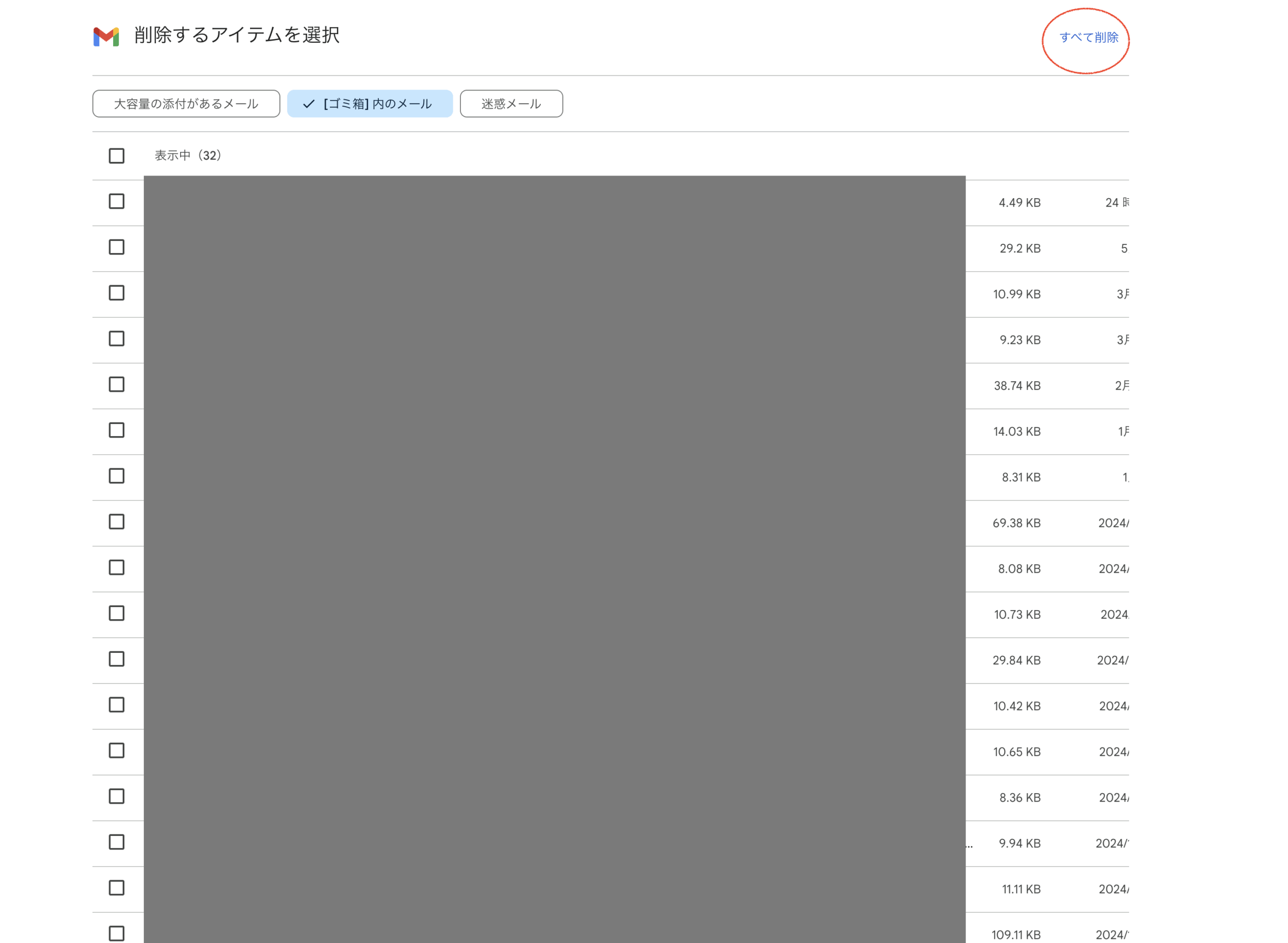- 迷惑メールや下書き・容量が大きい添付ファイルのメールを削除